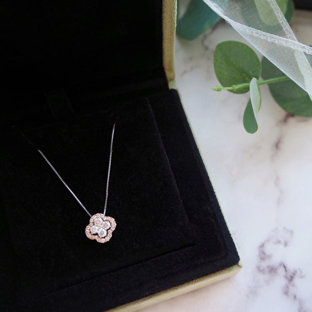 ダイヤモンドのクローバーが華やかなネックレス。