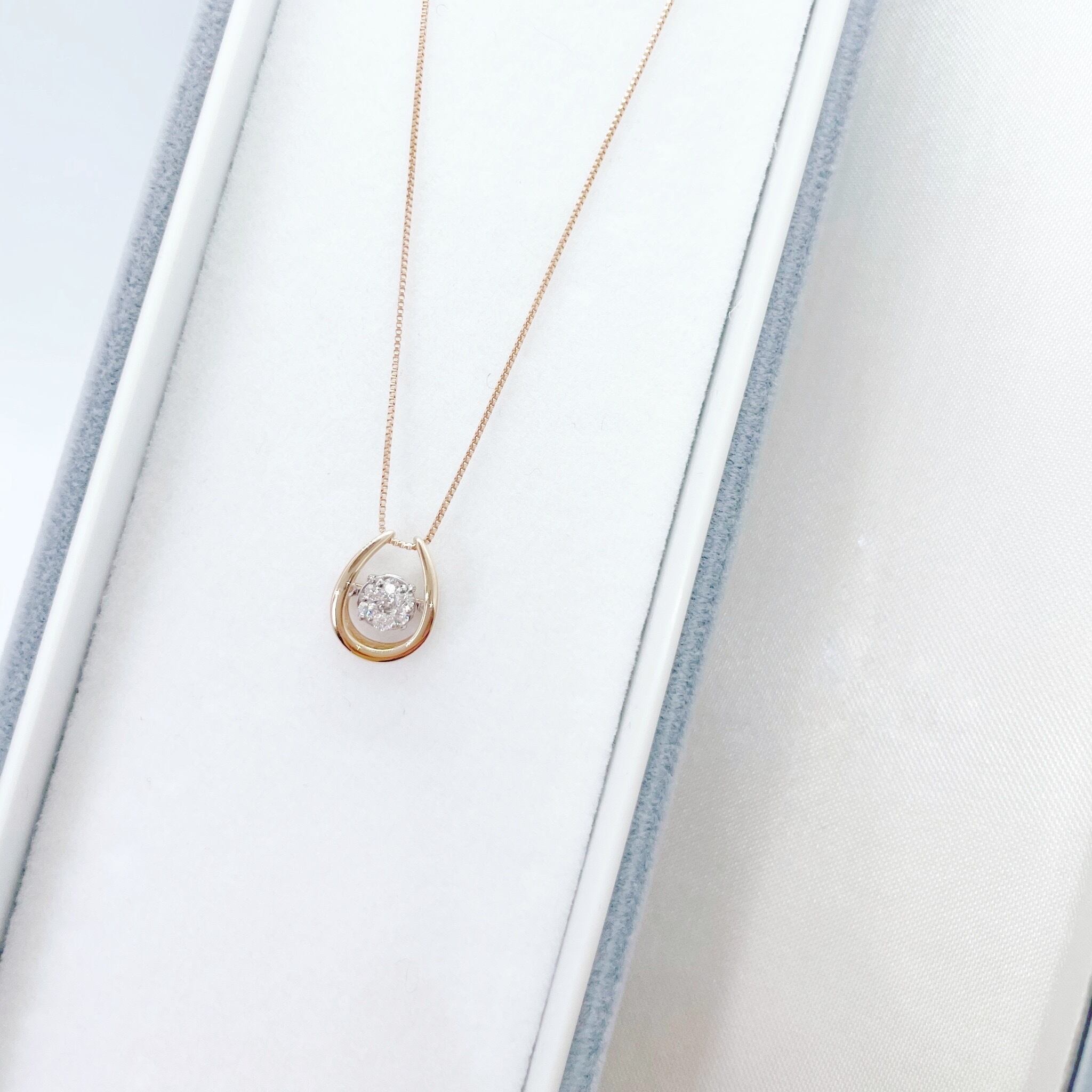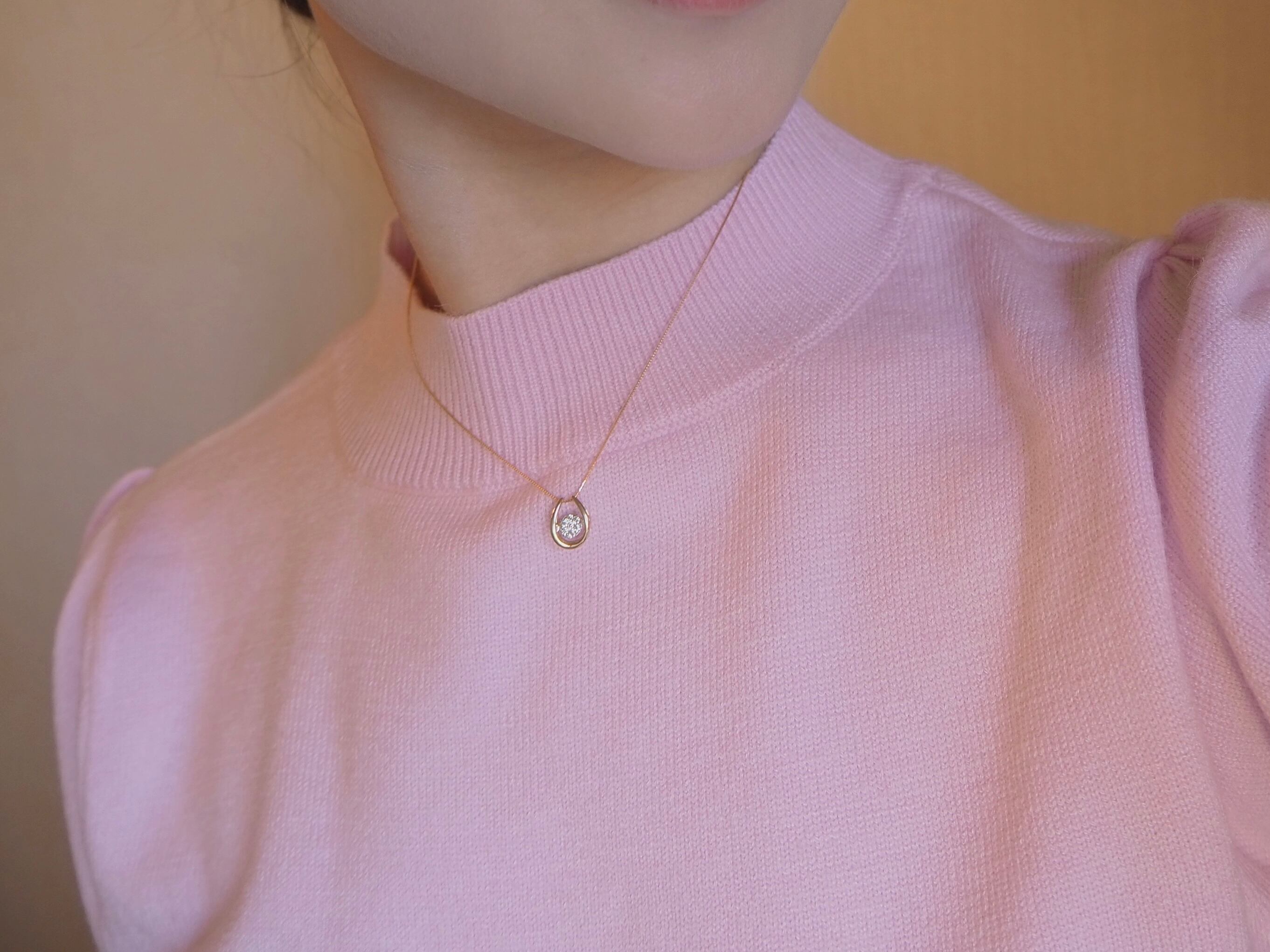 身につけた人のわずかな動きを振動エネルギーに変えてジュエリー本体は動かず、その石だけが細かく振動する、ダンシングストーンペンダントです。