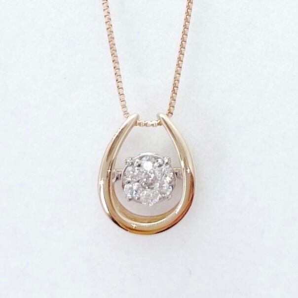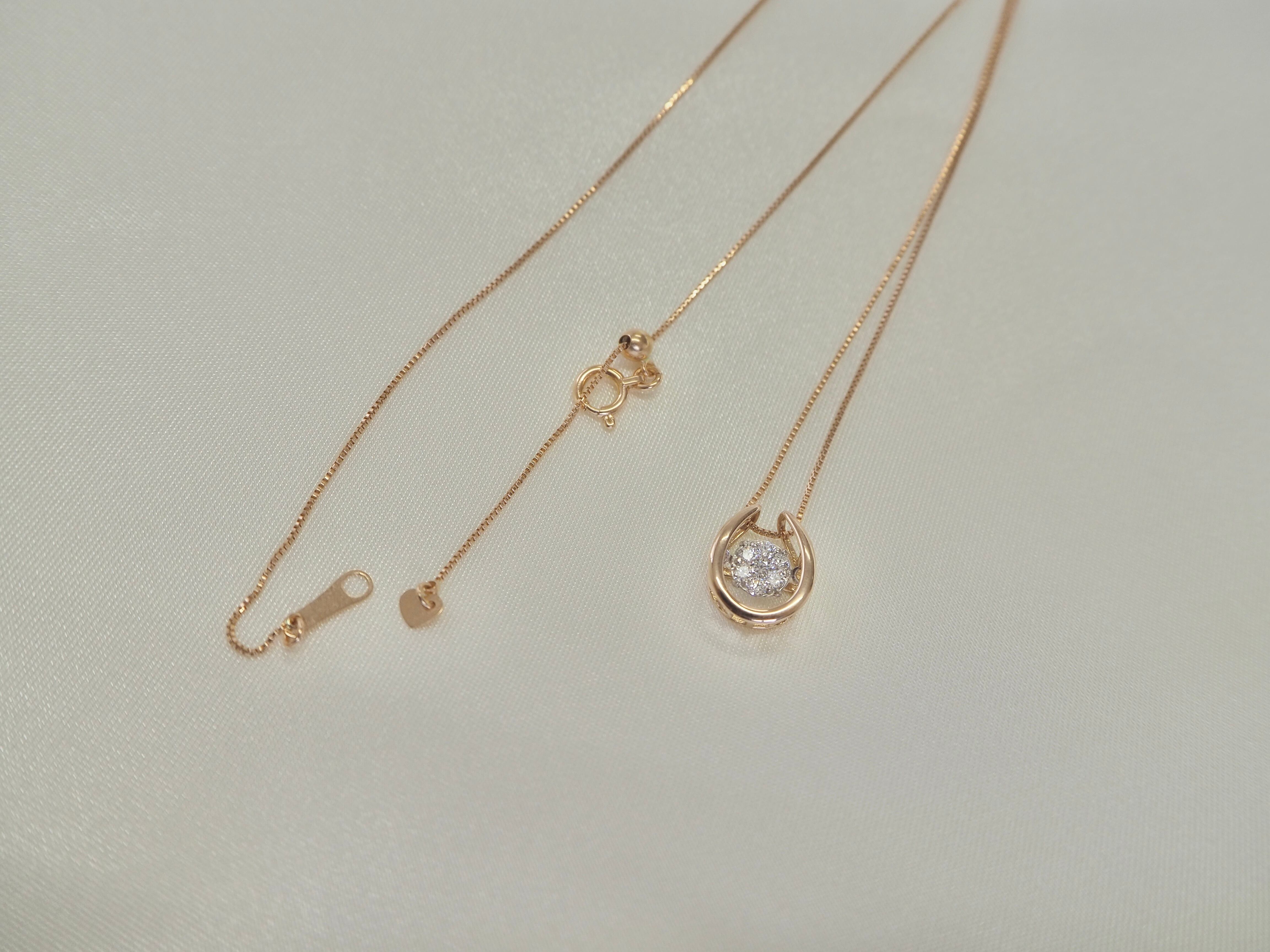 ホースシュー(馬蹄)モチーフのダンシングストーンが美しく煌めくネックレス。