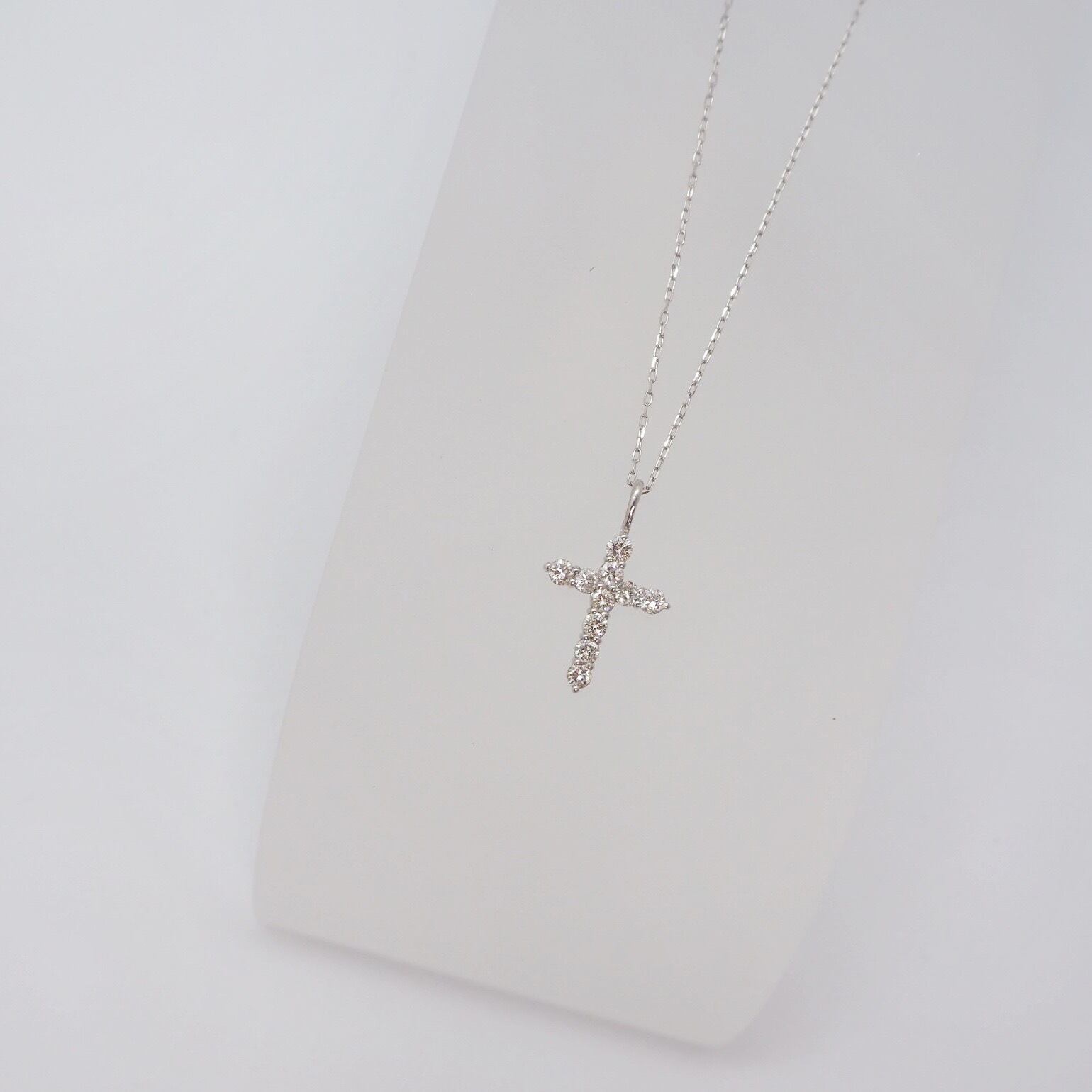 天然ダイヤモンドのクロスが美しく輝くネックレス。