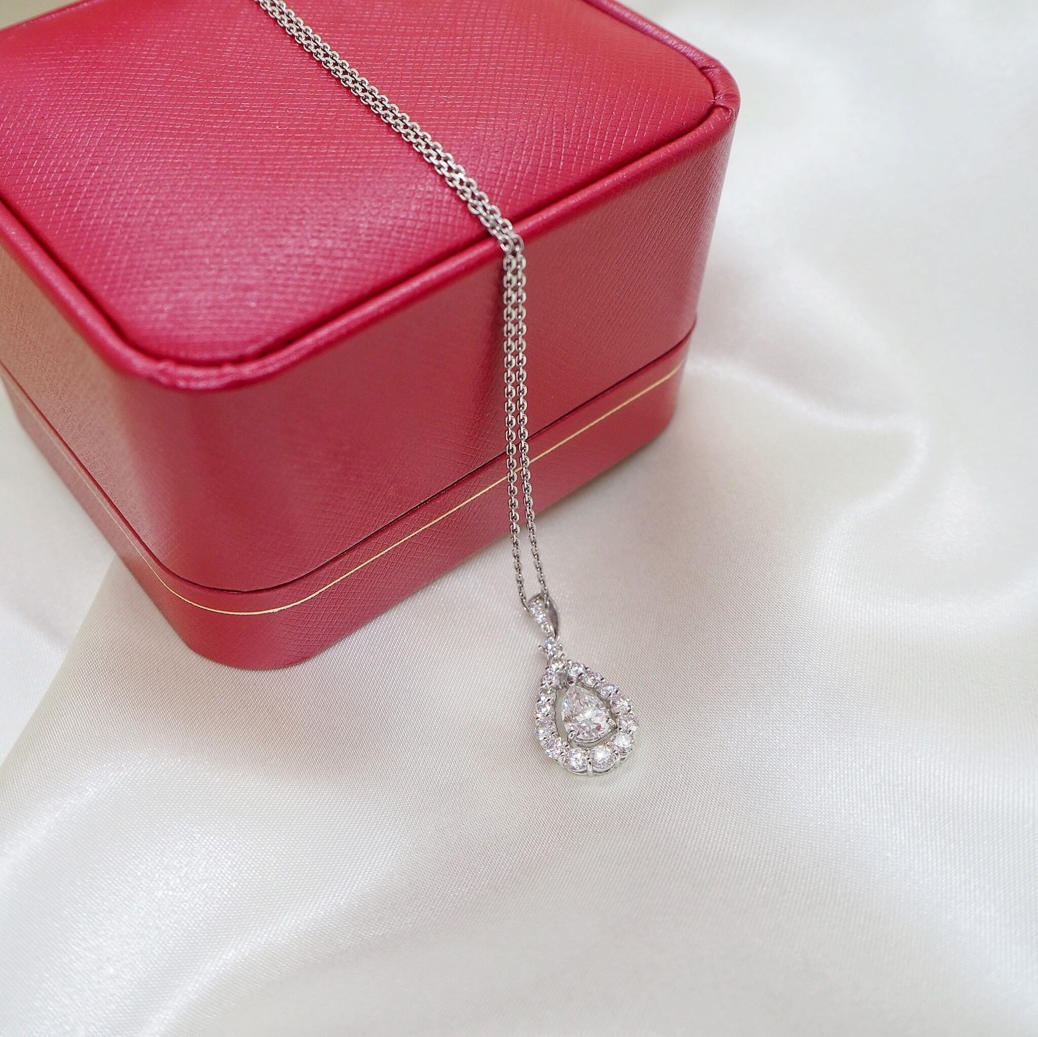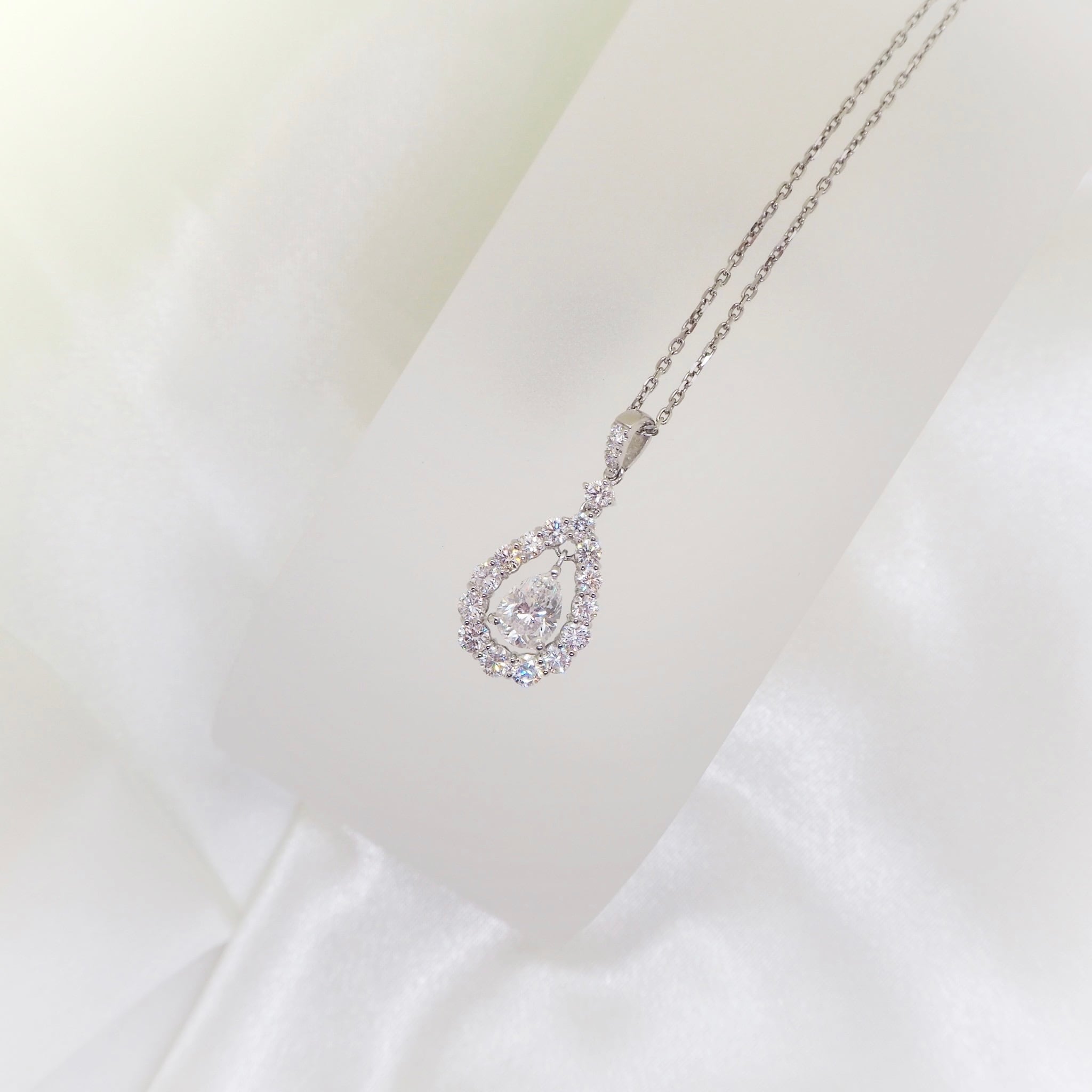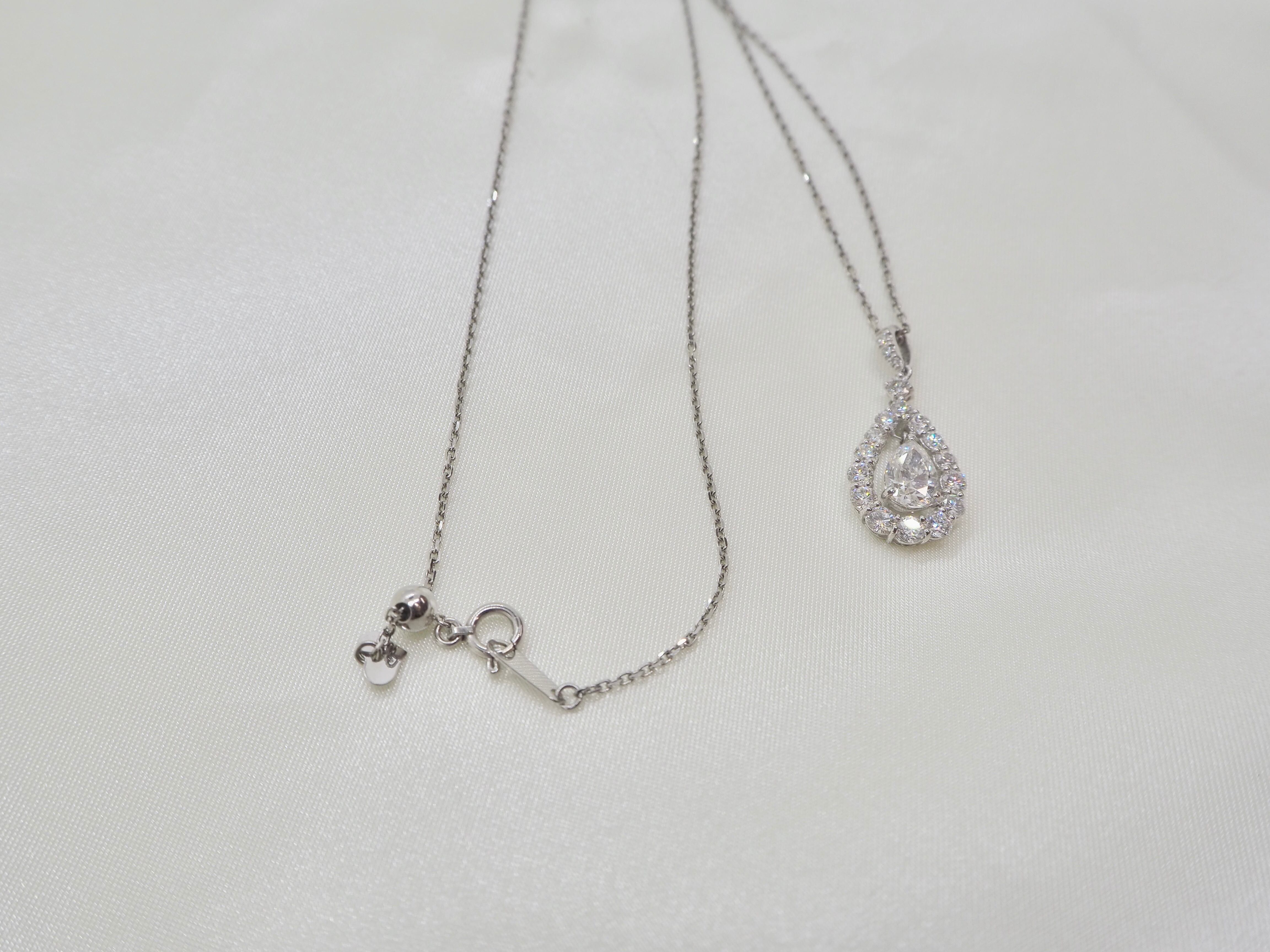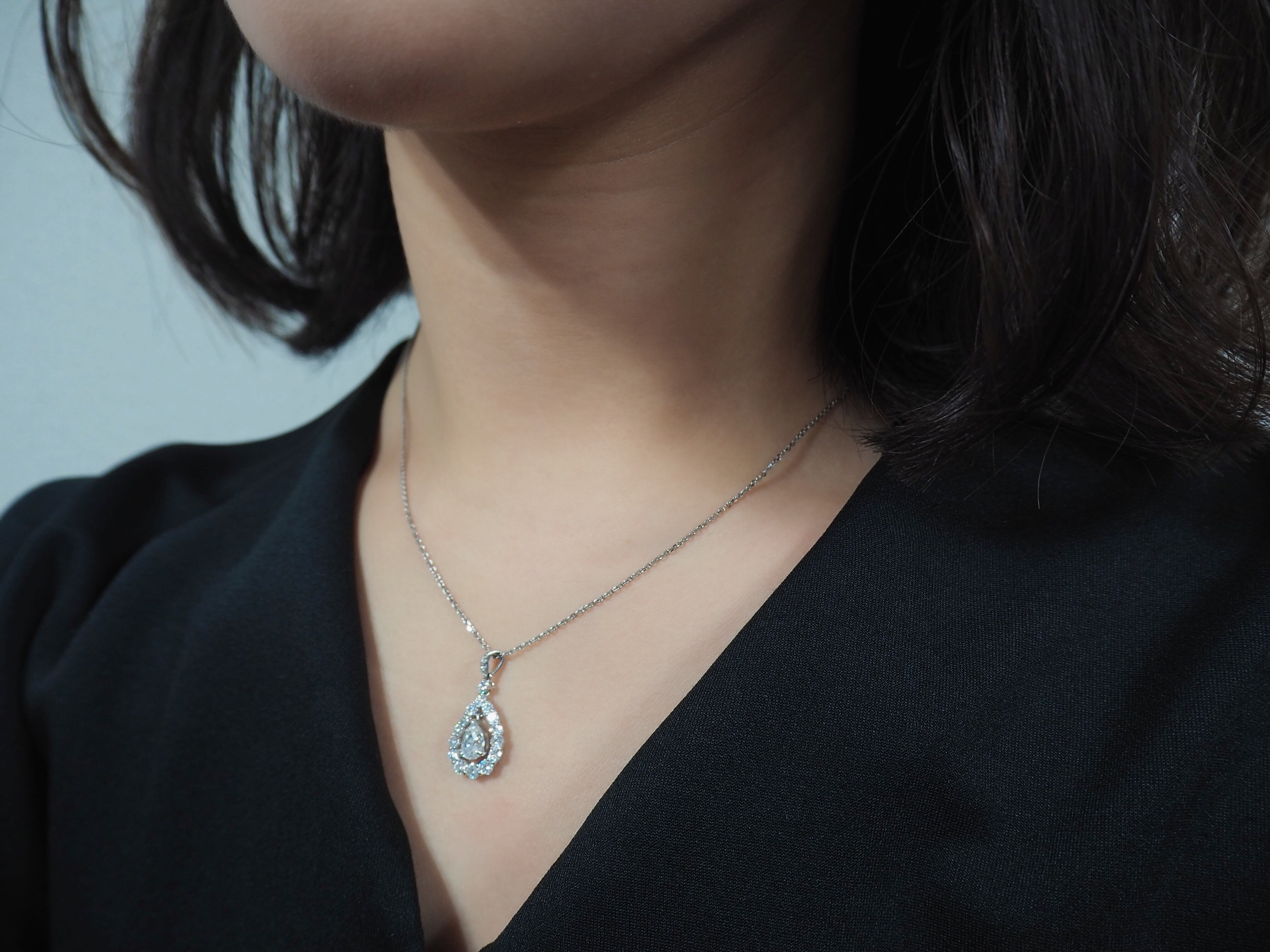 大粒のペアシェイプカットのダイヤモンドが美しく輝くネックレス
