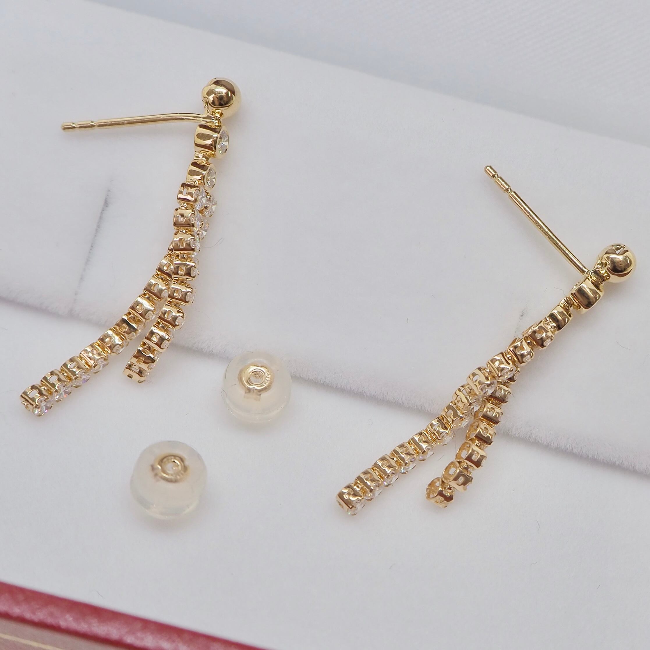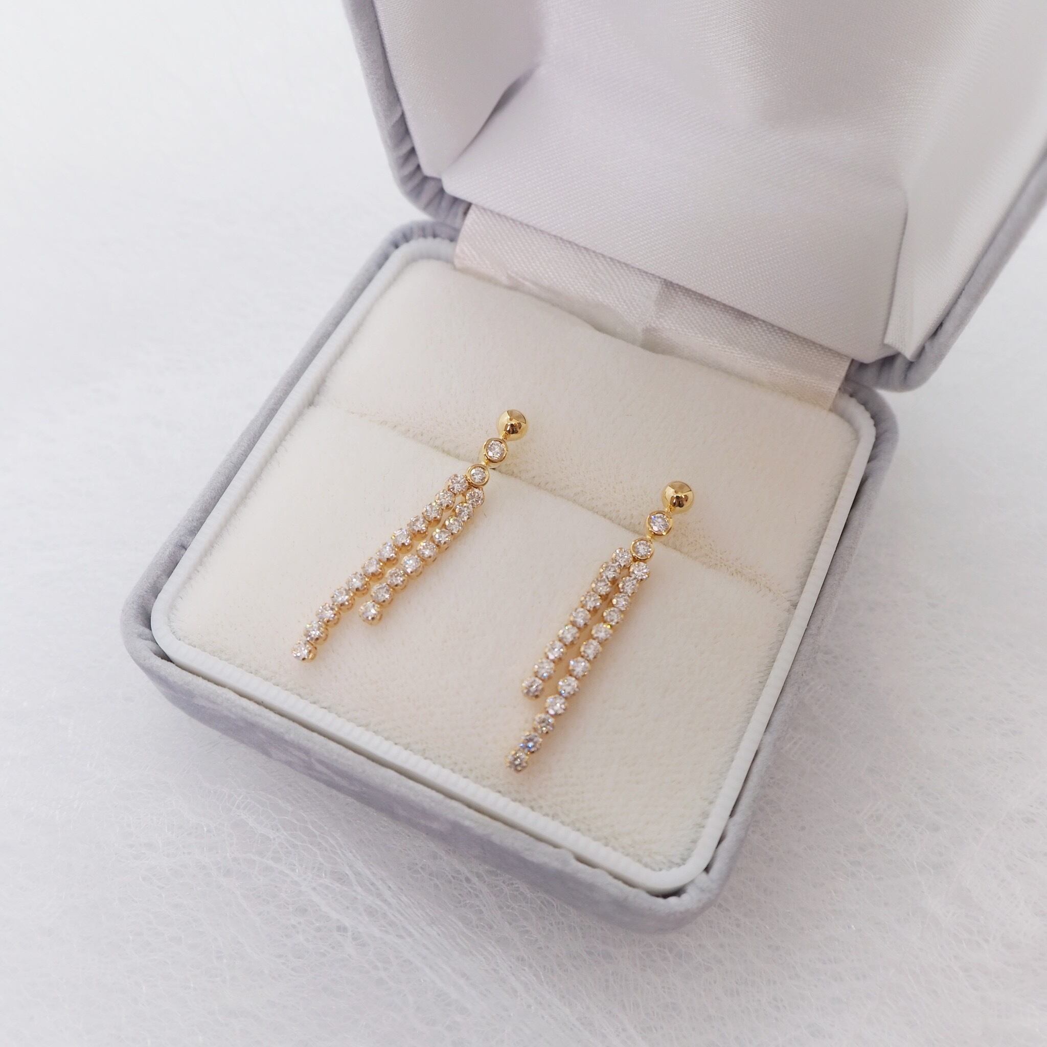 縦にダイヤモンドが煌めく、エレガントなラインピアス。