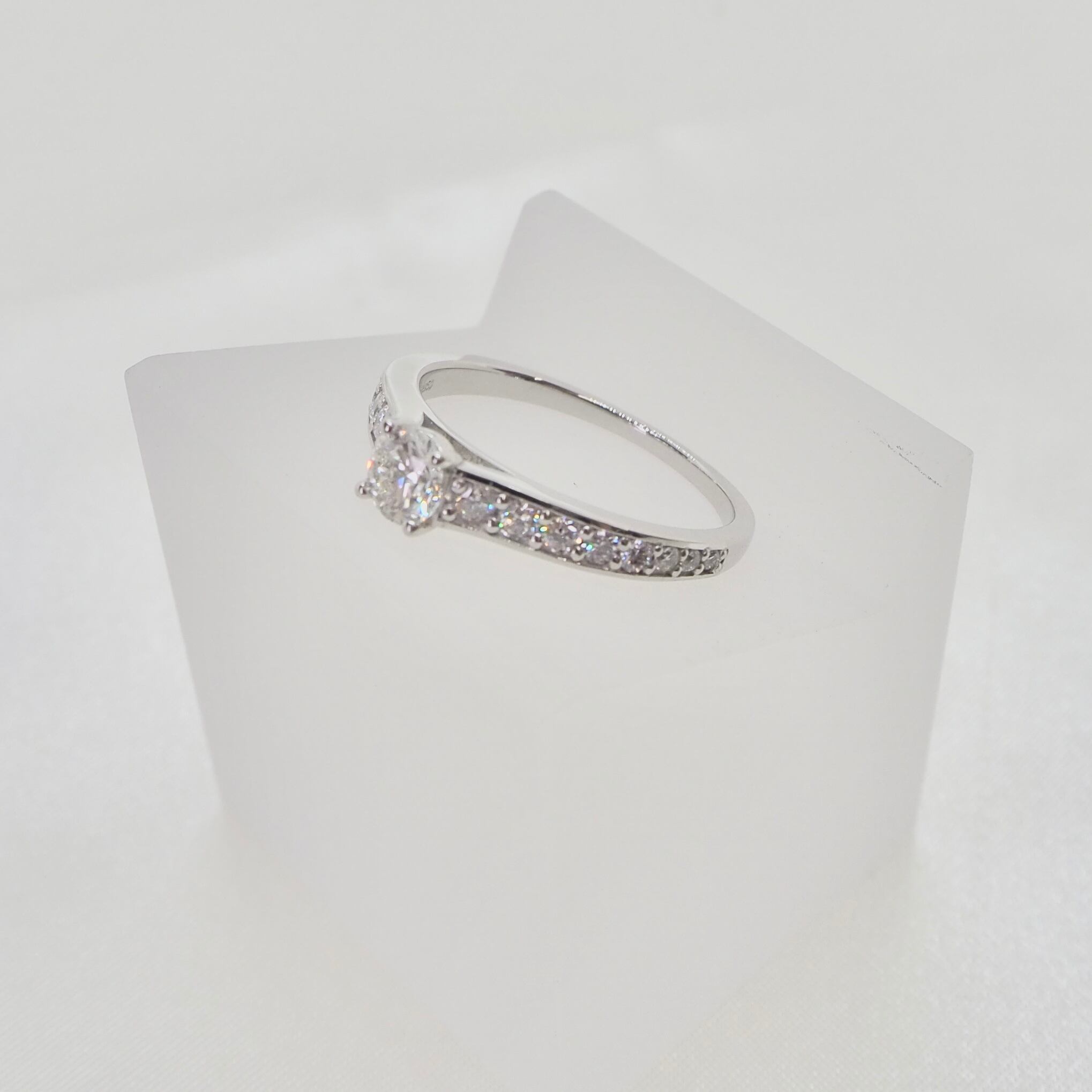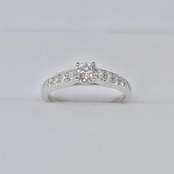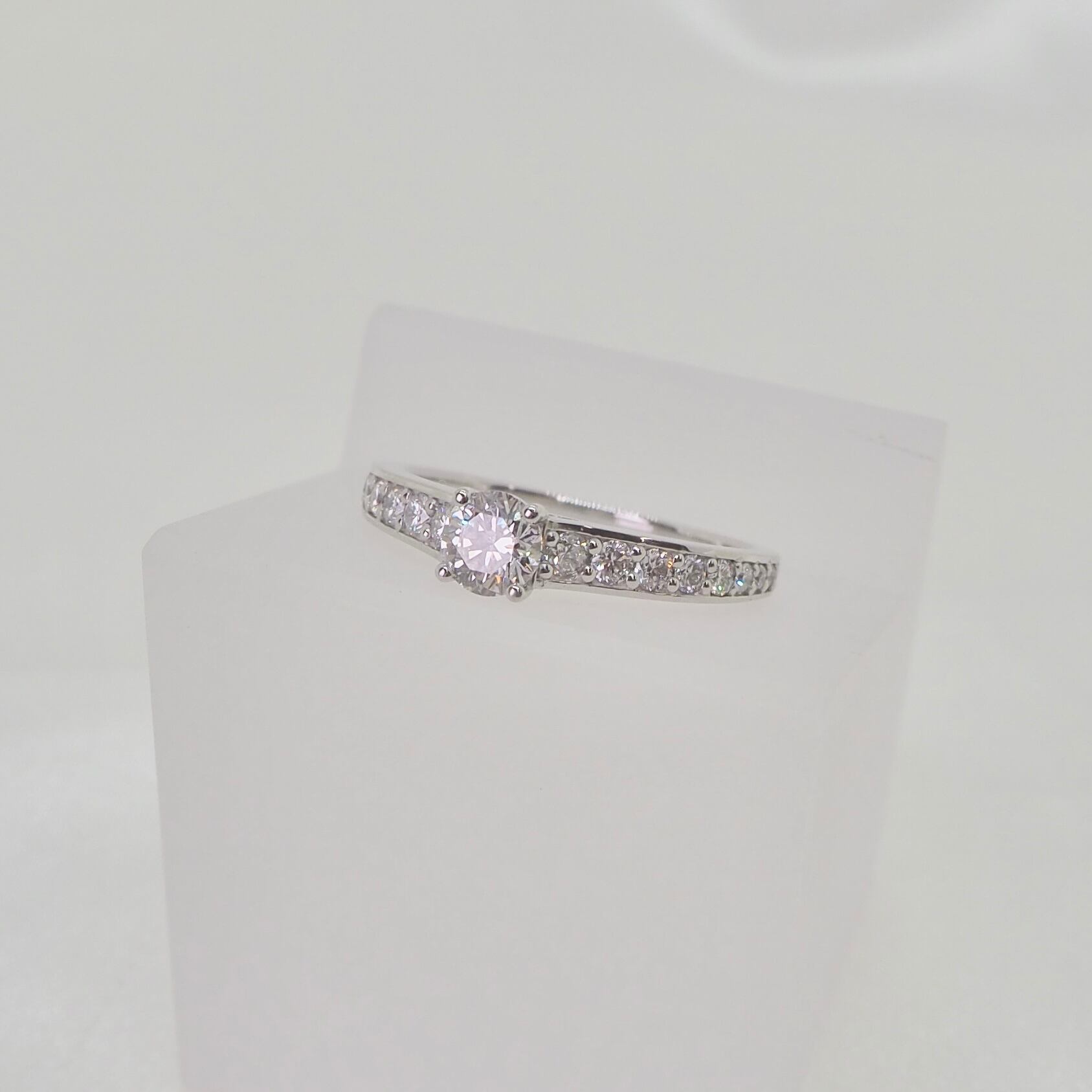 ラウンドブリリアントカットの美しいセンターストーンが煌めく王道リング。