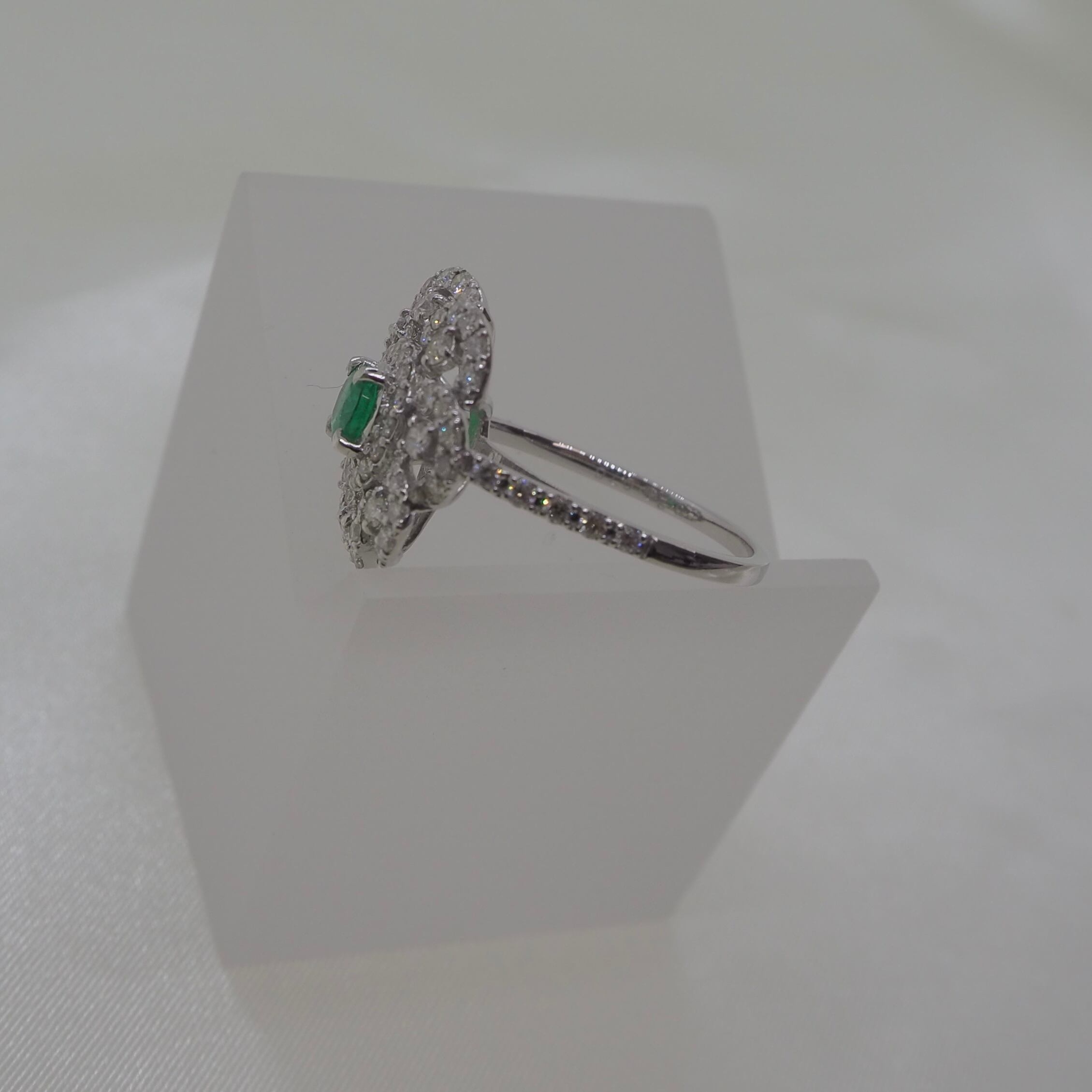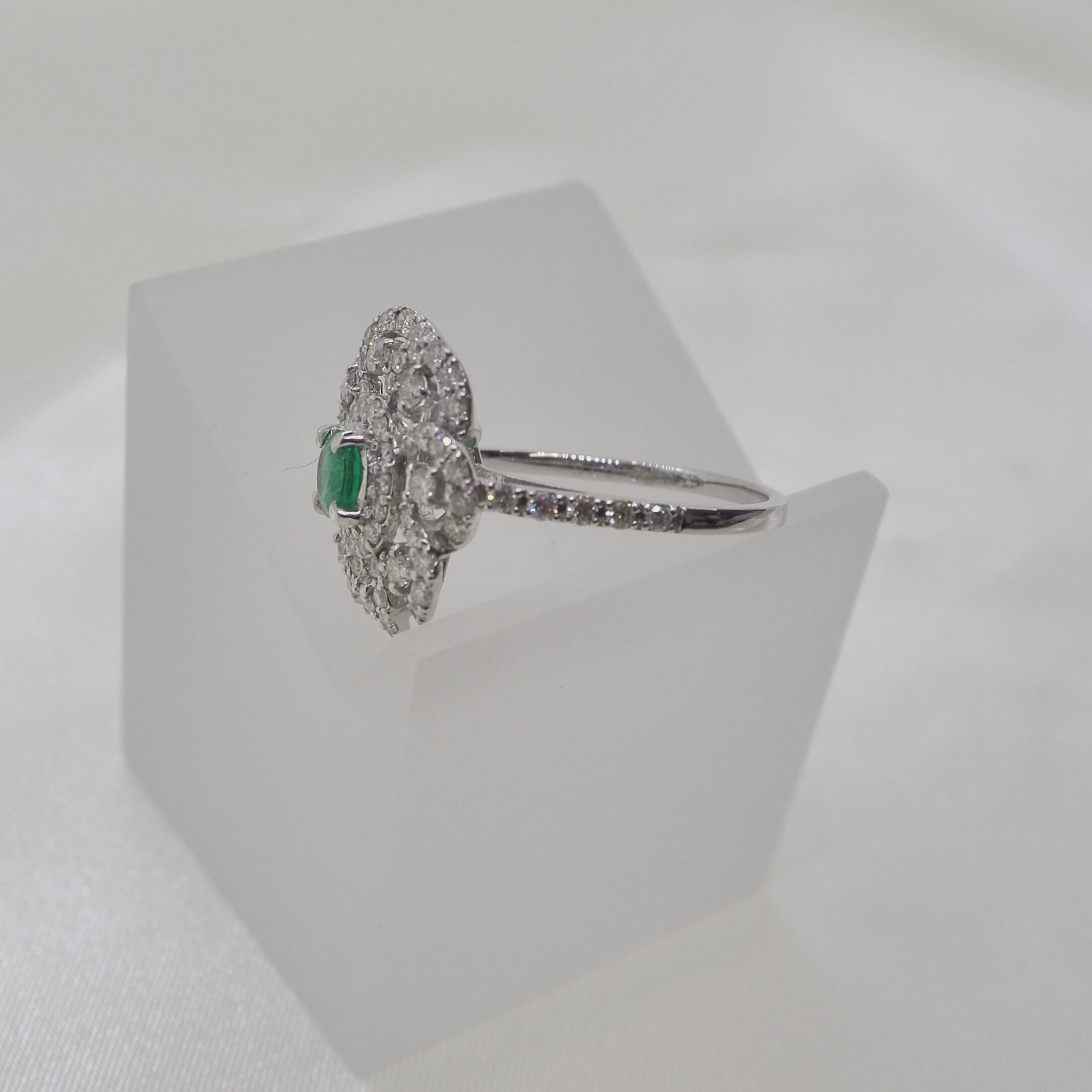 美しいエメラルドと天然ダイヤモンドを使用した贅沢なフラワーリング