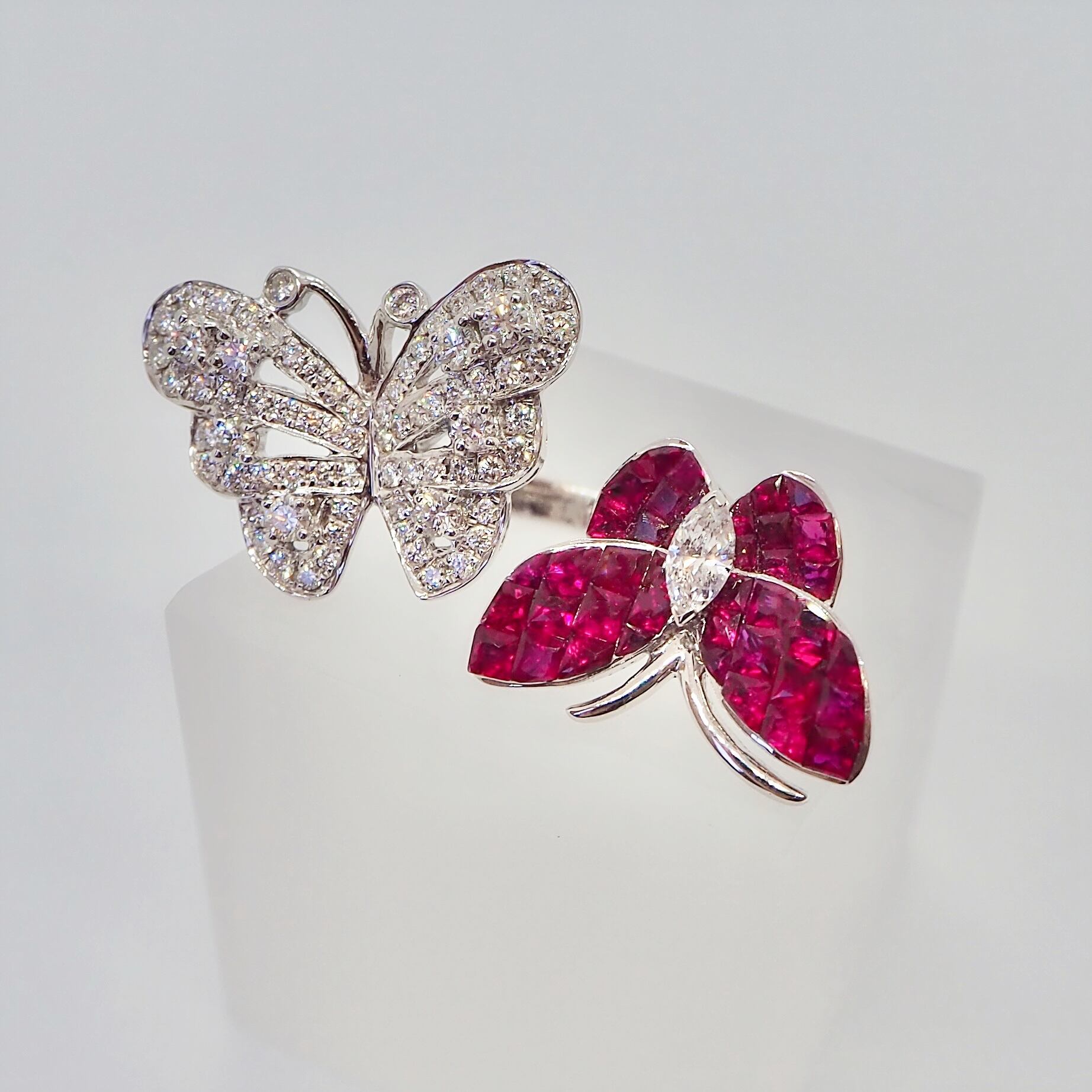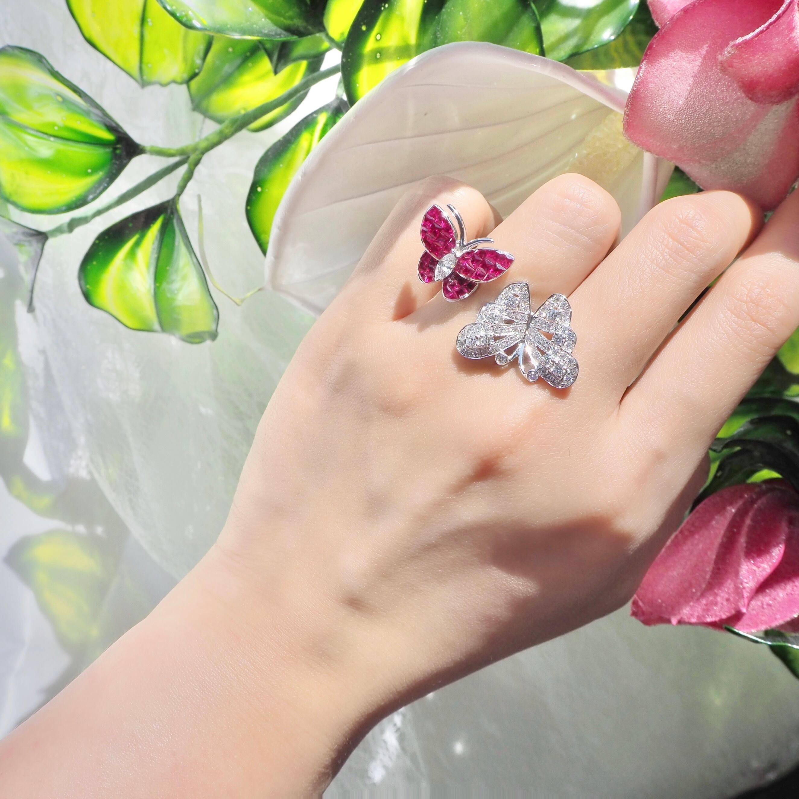 ダイヤモンドとルビーのバタフライが美しく煌めくリング