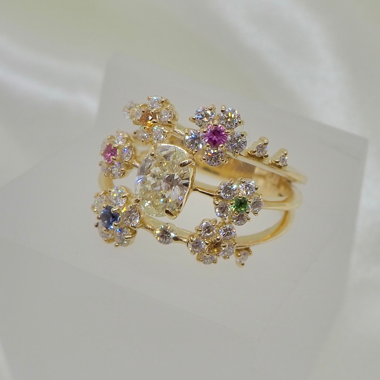 オーバルカットのベリーライトイエローダイヤモンドを中心に、