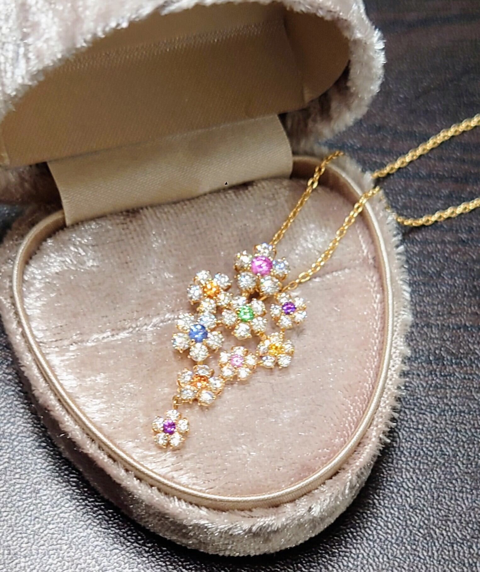 ダイヤ、カラーサファイアフラワーペンダントネックレス