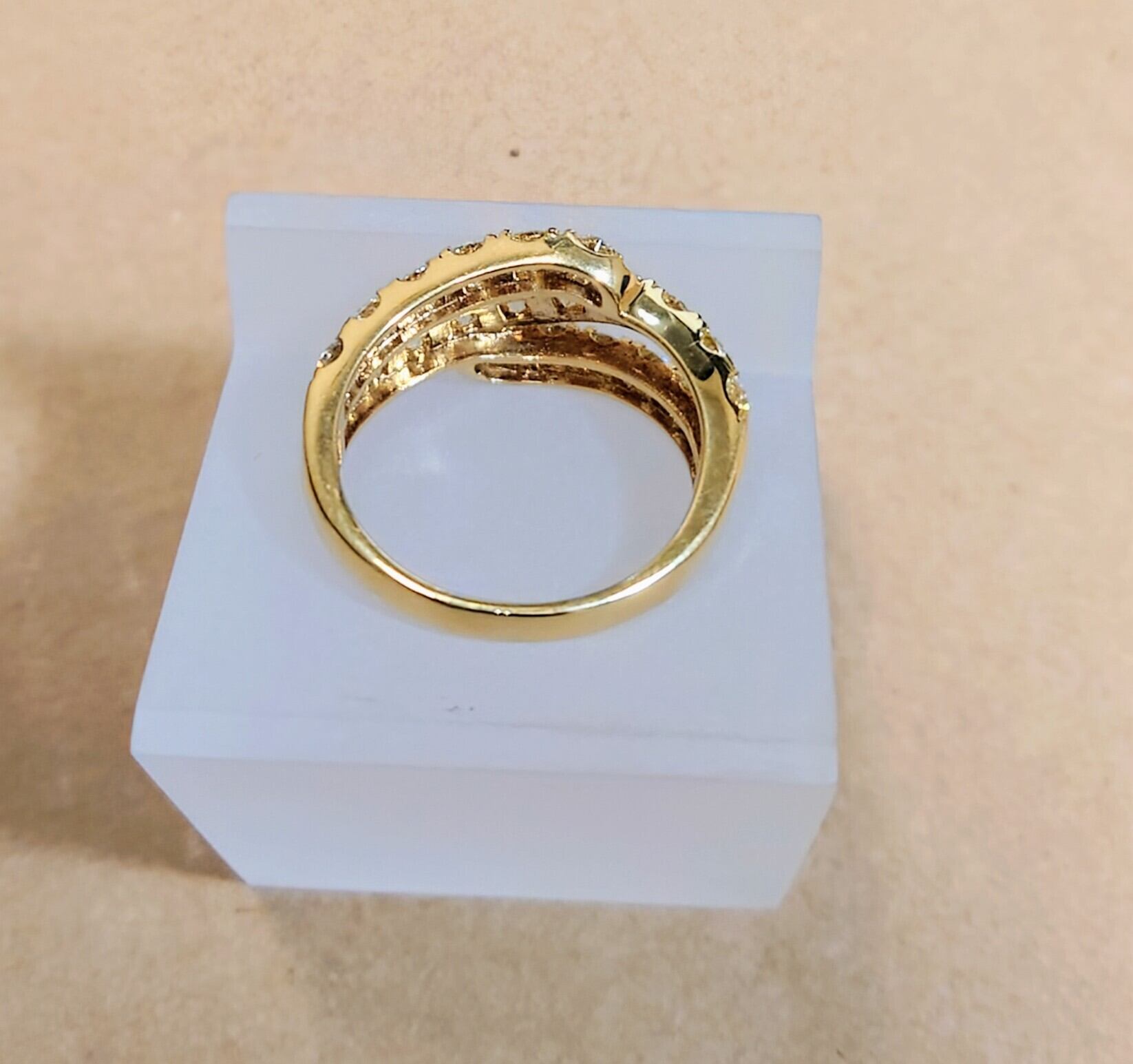 エレガントで存在感のあるデザインのK18イエローゴールドダイヤファッションリングは、ダイヤモンドの輝きが引き立つ特別な一品です。シンプルながらも洗練されたスタイルは、どんなシーンにもマッチし、指元を美しく引き立てます。