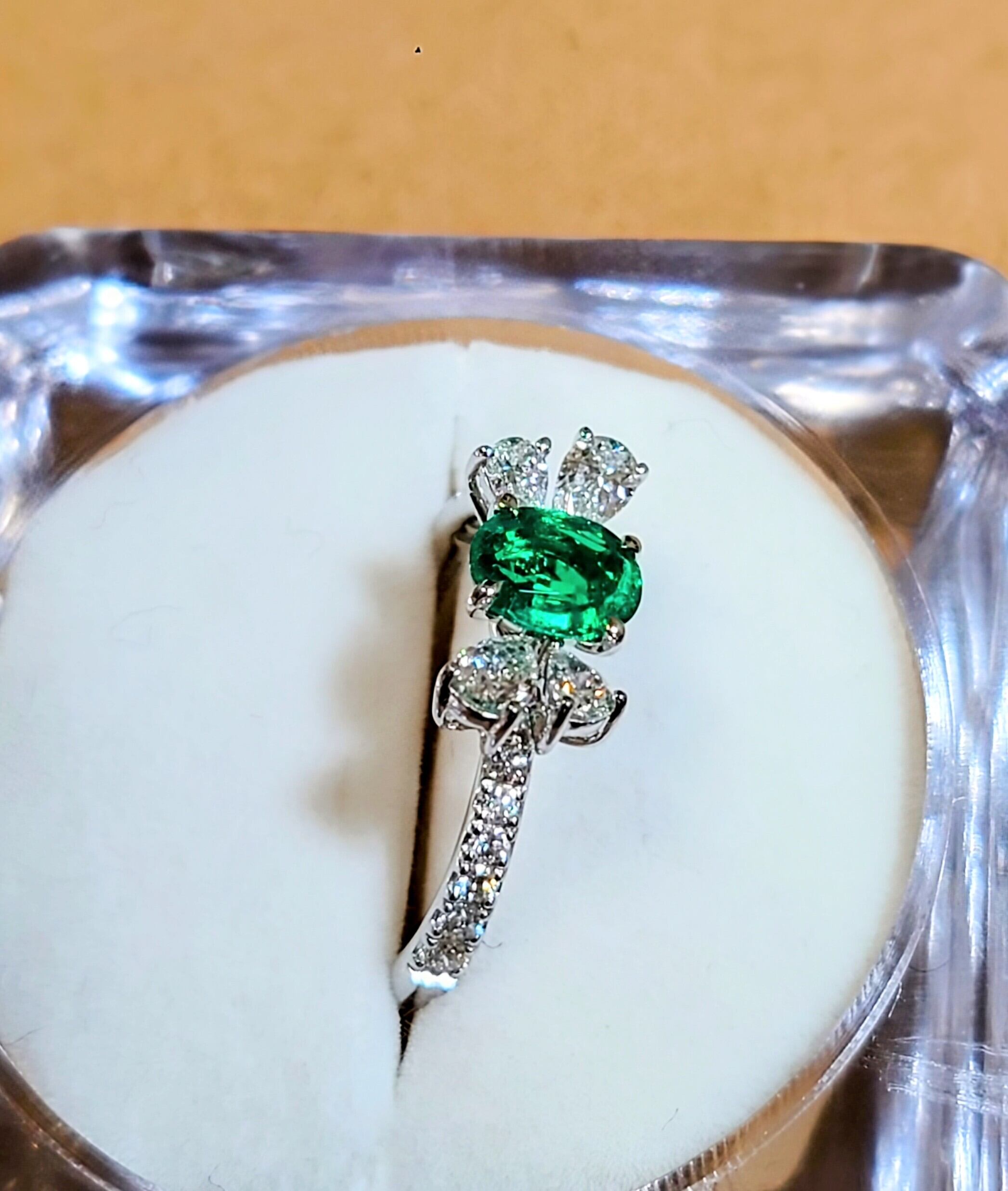 神秘的で上品なデザインのPT950オーバルエメラルドファッションリングは、あなたの指元を華やかに演出します。オーバルカットのエメラルドが透明感のある美しいグリーンの輝きを放ち、特別な瞬間を一層引き立てます。