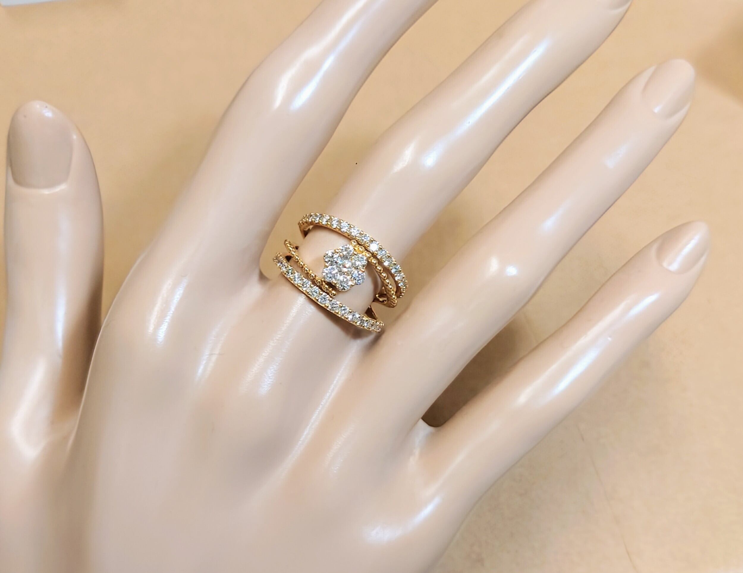 輝かしいK18イエローゴールドを使用したダイヤファッションリングは、エレガントでありながら遊び心のあるデザインが特徴です。